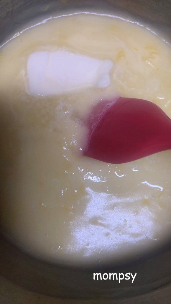 섞어 준 뒤 우유를 붓고 저어가며 끓여준 후