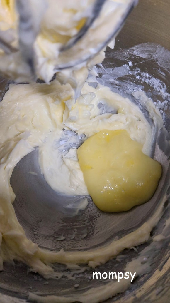 식혀둔 레몬크림을 조금씩 혼합하며 휘핑하여