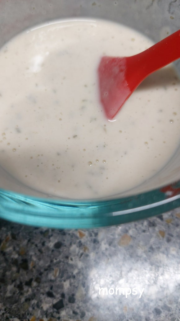 밀가루, 물, 소금, 오일, 드라이파슬리를 섞은