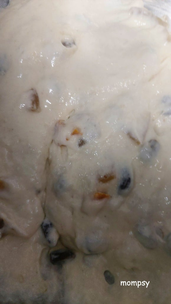 설탕을 전혀 넣지 않은 발효 빵반죽에 혼합하여