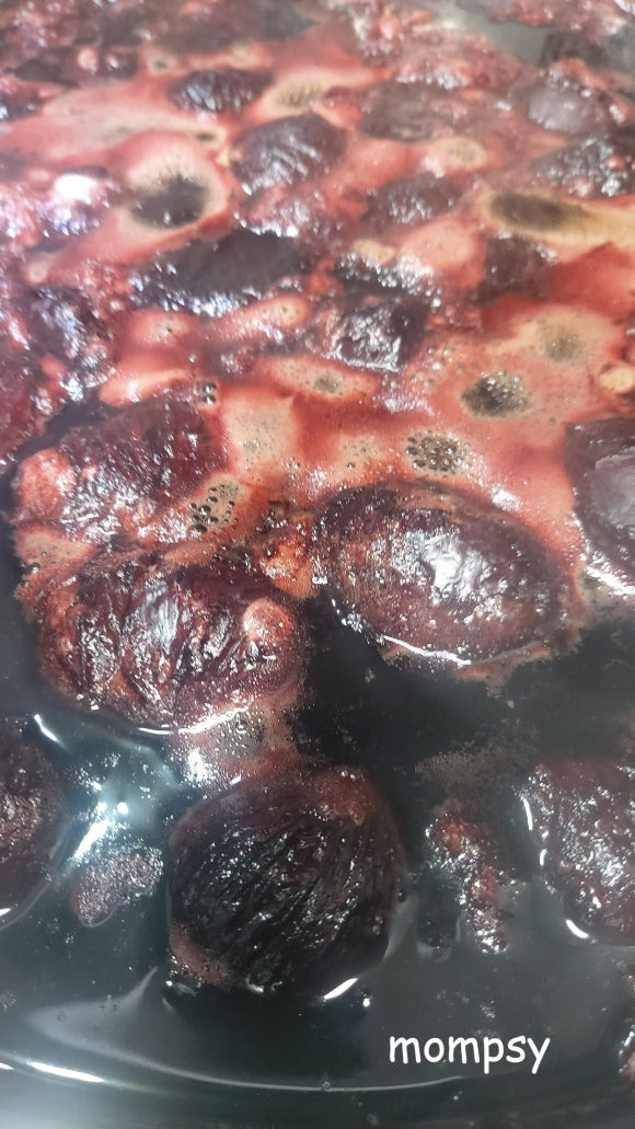 절반 정도 무게의 백설탕을 넣고 끓였습니다