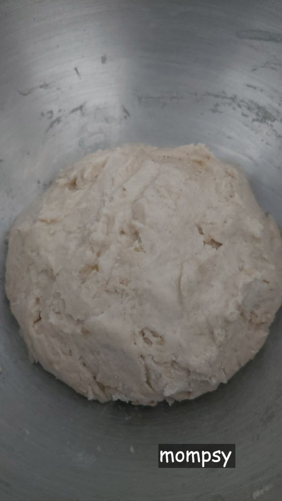 밀가루, 소금, 드라이 이스트를 섞고 물을 부어