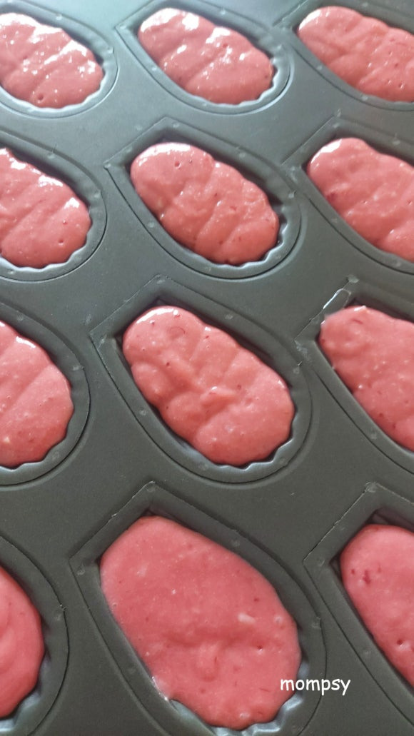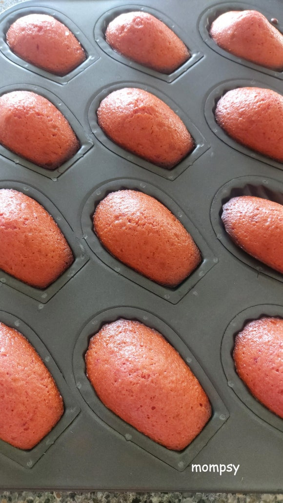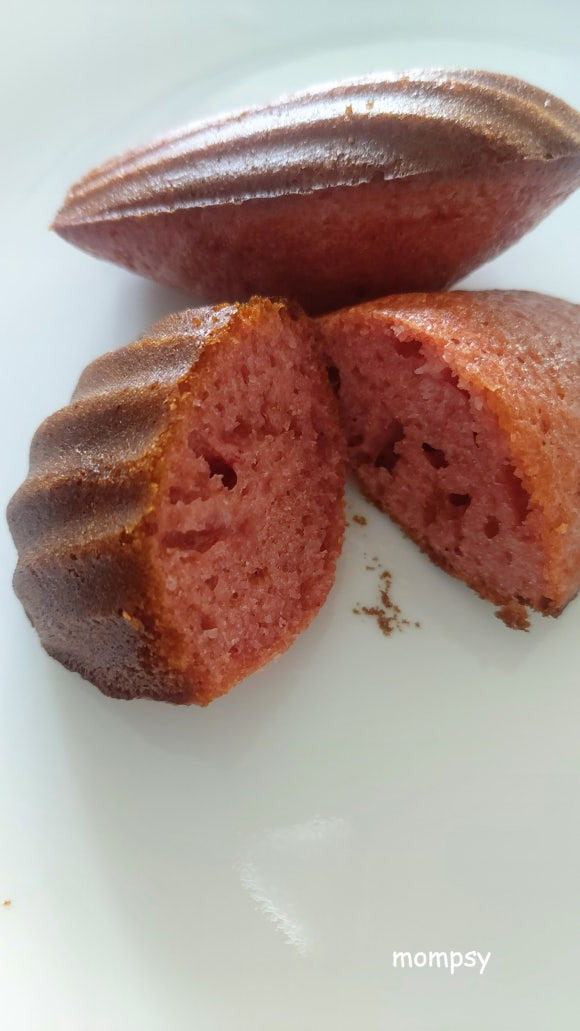 딸기향이 진하고 달콤 촉촉한 마들렌이었습니다