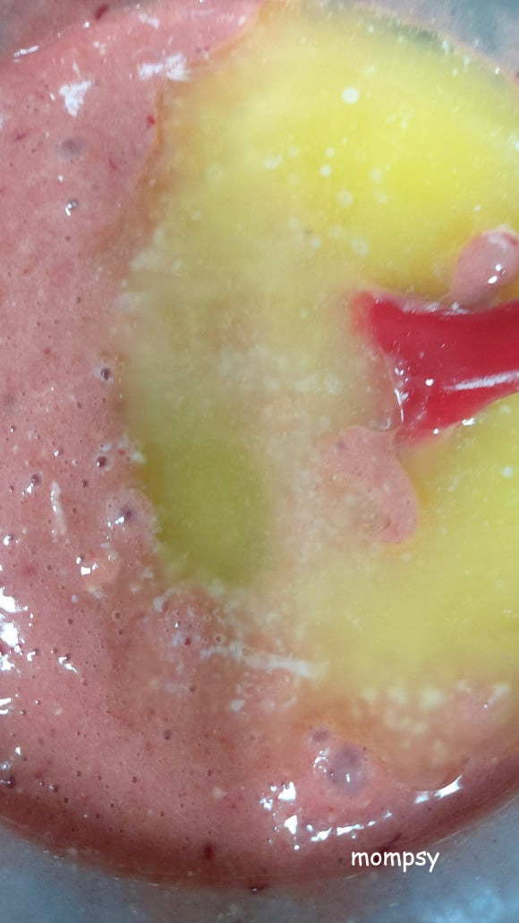 딸기 시럽에 소금을 섞어 풀어준 달걀을 넣고